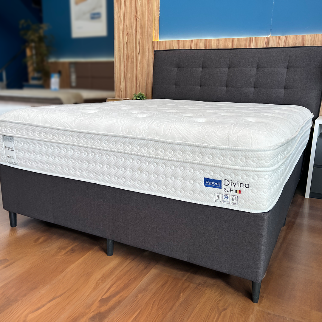O Divino Soft tem conforto nível intermediário e molas ensacadas individualmente para um correto alinhamento ortopédico.