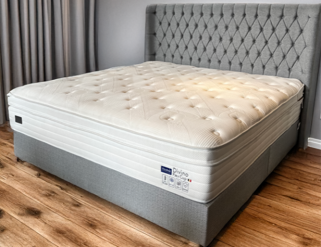 O Divino Soft tem conforto nível intermediário e molas ensacadas individualmente para um correto alinhamento ortopédico.
